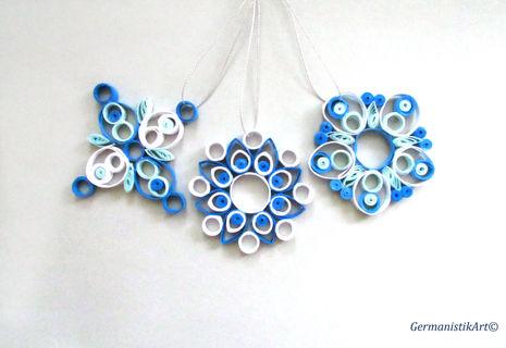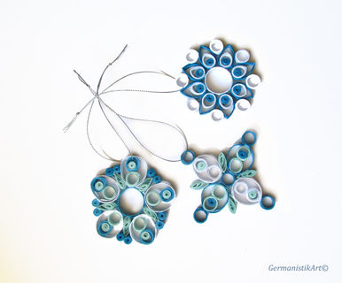 The lovely white blue Christmas quilling decoration makes your home more cozy.