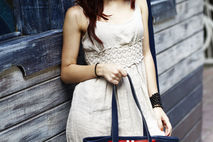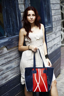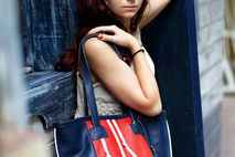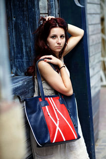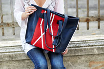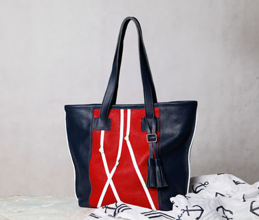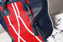 Leather tote bag made of premium Italian pebbled cowhide. The colors are navy blue, rich red and white. It will be your perfect summer companion for everyday use or for your weekends! On the front I made decor of white lambskin and added tassels for finishing touch.