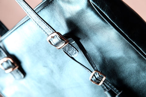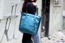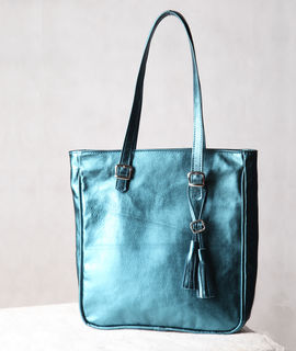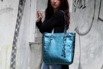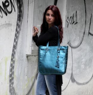 Classic and stylish leather bag, which I made of soft and shiny teal lambskin leather. Decorative tassel on the front.