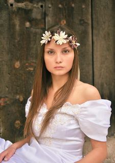 The length of the satin ribbon is long enough, thus allowing to make a beautiful bow at the back of the neck or head! The flower in the middle has a diameter of 3 inches (7.6 cm).
