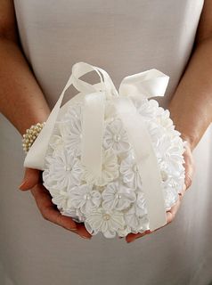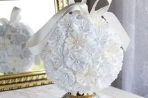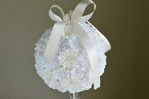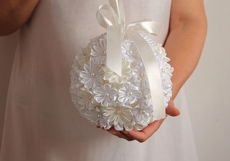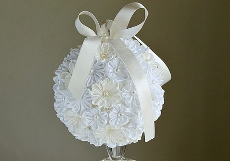This listing is for one kissing ball made in ivory and white kanzashi flowers.