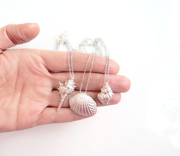 Dainty beach inspired necklace made with 3D high quality silver plated seashell with gorgeous detail on a delicate silver plated chain. Beautiful and unique charm necklace, great for everyday wear or a gift to a loved one. Pick the style of the shell and the length of your necklace from the drop-down menu.