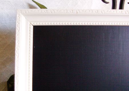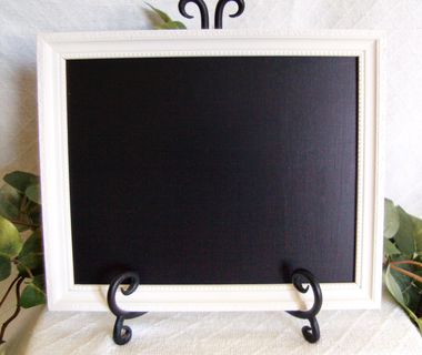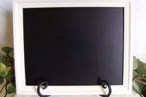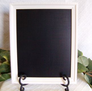 11 1/2" x 9 1/2" up cycled frame which I hand painted in creamy white and made into a chalkboard which measures 9 1/2"x 7 1/2".