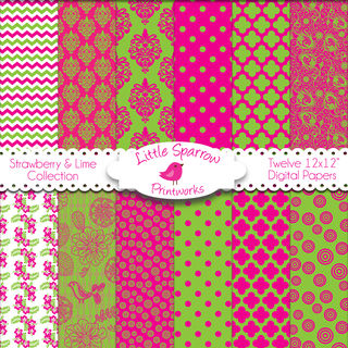 Strawberry and Lime Collection Set of 12 Digital Papers