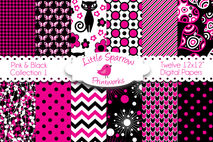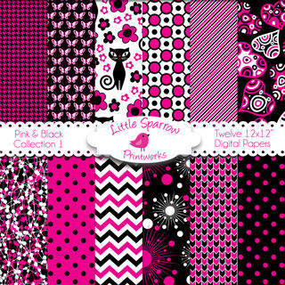 Hot Pink and Black Collection #1 Set of 12 Digital Papers