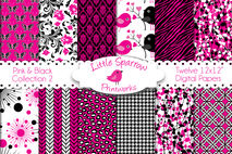 Hot Pink and Black Collection #2 Set of 12 Digital Papers