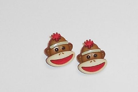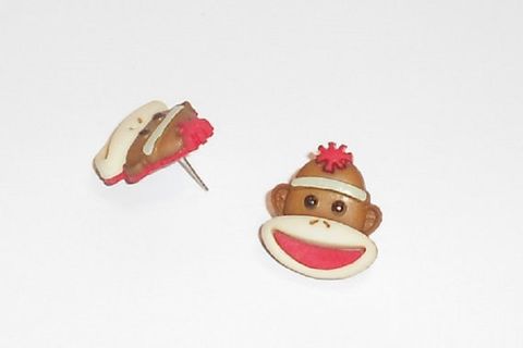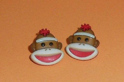 These whimsical sock monkey pierced earrings will be fun to wear. Sock monkeys are everywhere these days, and now they can be on your ears, too!!!!