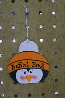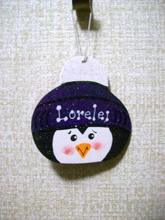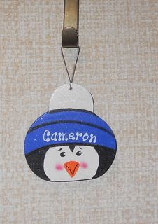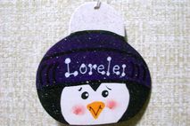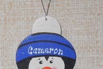 3" wooden penguin ornament can be personalized with any name. Hang on the tree, tie on a package or add a college name and hang in the dorm.