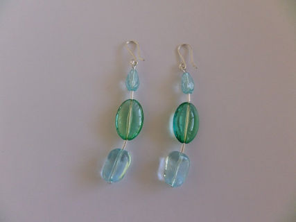 Aqua Blue & Green Clear Glass Bead Sterling Silver Earrings are made using quality 925 sterling silver 0.8mm 20 gauge wire and 1 x 6mm 1 x 14mm & 1 x 12mm glass beads.
