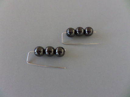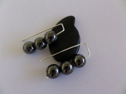 Hematite Balls Bead Dangle Sterling Silver Earrings are made using quality 925 sterling silver 0.8mm 20 gauge wire and 3 x 8mm Hematite ball beads.
