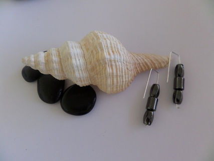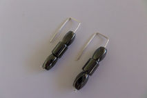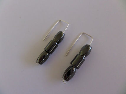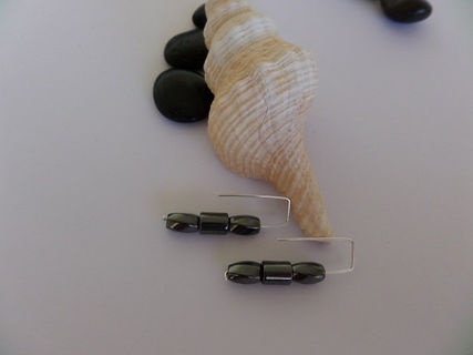 Hematite Barrel Bead Dangle Sterling Silver Earrings are made using quality 925 sterling silver 0.8mm 20 gauge wire and 2 x 6 faceted & 1 x 7mm Barrel Hematite beads.