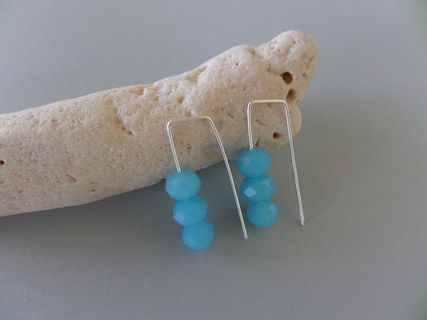 Milky Aqua Czech Crystal Beaded Sterling Silver Earrings are made using quality 925 sterling silver 0.8mm 20 gauge wire and 8mm faceted Czech glass beads.