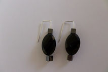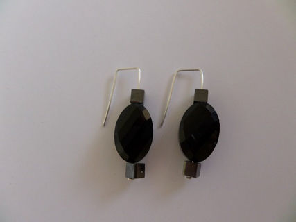 Hematite Squares with Oval Faceted Czech Crystal Beaded Dangle Sterling Silver Earrings are made using quality 925 sterling silver 0.8mm 20 gauge wire and 3 x 5mm Hematite squared & 1 x 20 x 13mm Czech Crystal Oval Bead.
