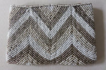 Womens & Teen Cream, Tan & White Beaded Purse with zigzag Design