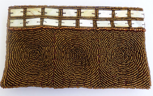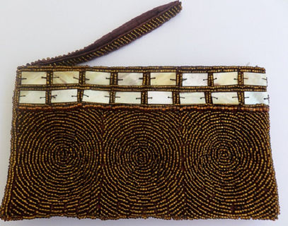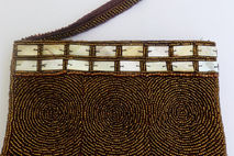 Womens Bronze Beaded clutch Purse with Shell Design Feature, Satin inlay & Metal Zip