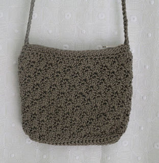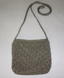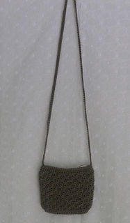 Khaki Crochet Should Strap Purse Bag with Satin inlay & Metal zip