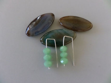 Milky Mint Faceted Czech Crystal Glass Bead Dangle Sterling Silver Earrings are made using quality 925 sterling silver 0.8mm 20 gauge wire and 8mm faceted Czech glass beads.