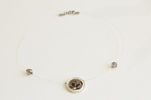 This Pretty Silver Charm & Bronze Violet Faceted Czech Crystal bead necklace is a delicate & visually stunning design with flower charm feature on clear Line thread is the perfect accessory for the bride to be, her gorgeous bridesmaids, a prom or school ball, graduation or to accessorize for any special occasion..