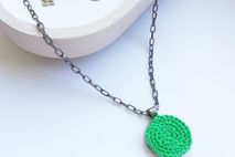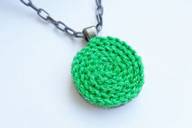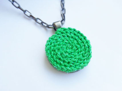 Crochet circle medallion, The crochet circle made with high quality yarn with discreet brilliant effect. The metal base has a inox color.