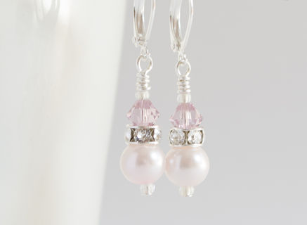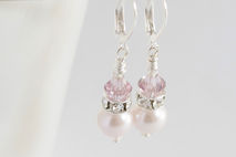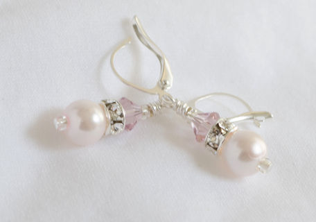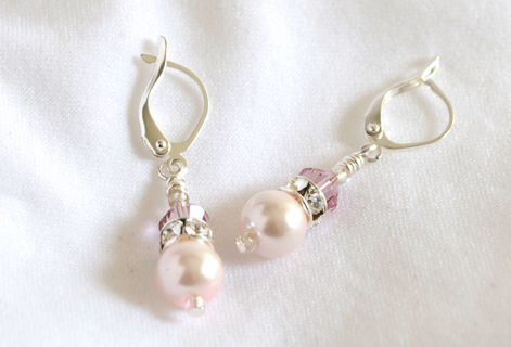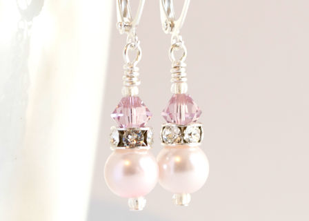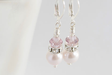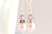 Swarovski Light Rose Crystal and Glass Pearl Earrings with Rondelles