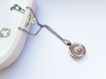 The crochet circle made with high quality cotton yarn. The metal base has a inox color.