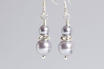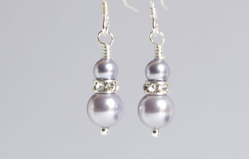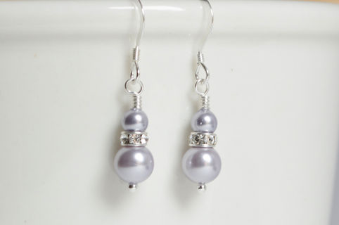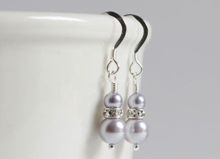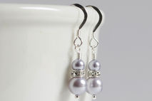 Lavender Pearl and Swarovski Crystal Earrings on Pretty Stirling Silver Findings