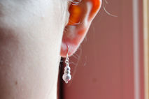 They are hung on pretty, yet simple petite stirling silver fish hook ear wires. Easy to wear, and easy to put in and remove.