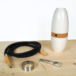 Completely new interpretation of the conventional Arabic hookah/shisha. This compact piece of art will be a great addition to a modern and stylish interior. With the use of matte ceramic and granulated cork, two conventional materials are used for modern purposes.