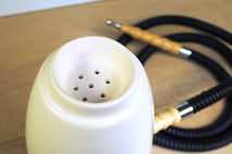 The stiffness of ceramics is used in an optimal way. Even the cup for the tobacco is integrated in the ceramic top part. Sealing the hookah on crucial parts will be achieved by the flexibility of cork.