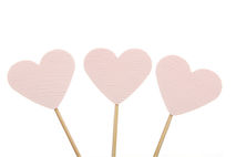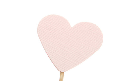 Made from textured cardstock in pale / blush pink. Hearts are 1.5 inches and are mounted to 4 inch wooden food picks.