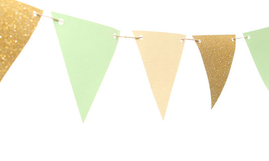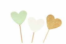 12 mint green cupcake toppers / party picks with gold foil heart.