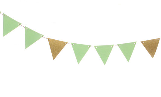 Mint Green and Glitter Gold triangle flag banner