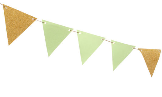 12 Flag Cupcake Toppers / Party Picks. 4 Mint Green, 4 Ivory and 4 Gold Glitter