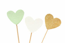 12 ivory cupcake toppers / party picks with gold foil heart.