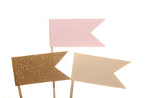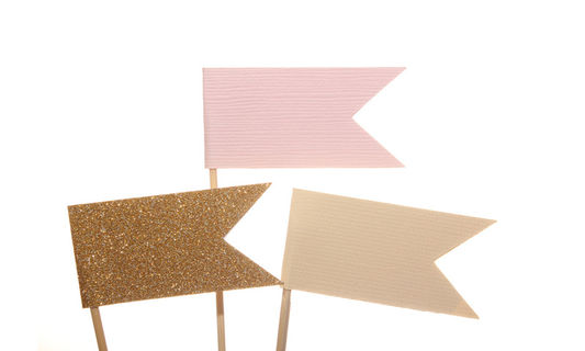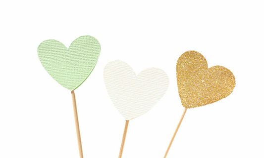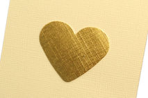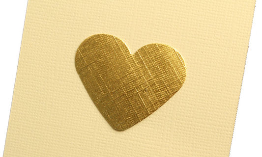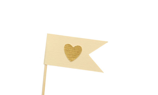 This banner is made from textured ivory cardstock flags that measure 5.5 inches tall. Each flag is decorated with a gold foil heart made from textured, metallic cardstock and measuring 1.5 inches.
