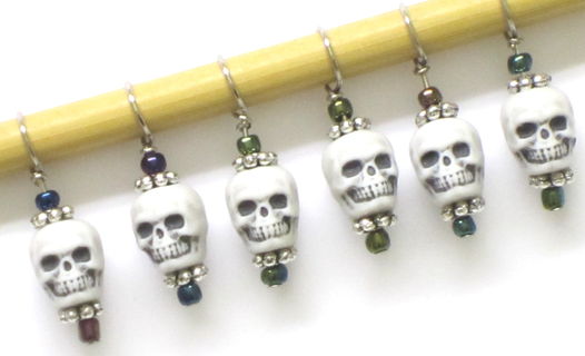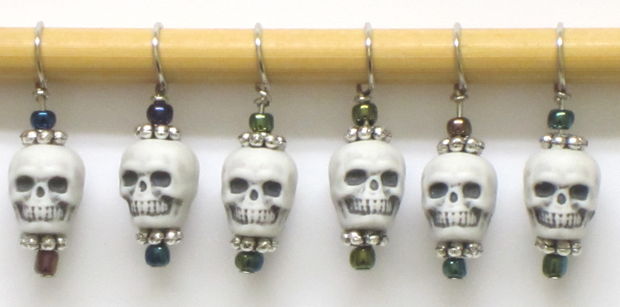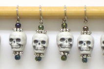 These hand made skull and bead knitting stitch markers aren't for your grandma's knitting needles... but few knitters these days are just like your grandma either!