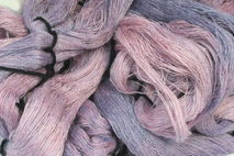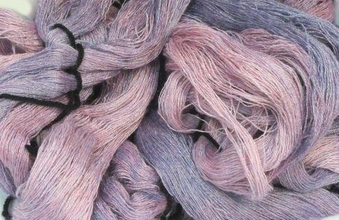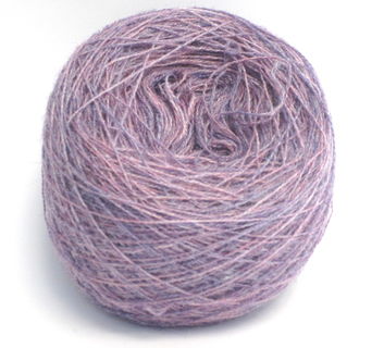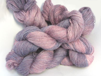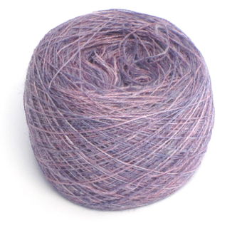 Content is 50/50 Rayon / Wool and is hand dyed a monochromatic color scheme with shades of lavenders and purples.