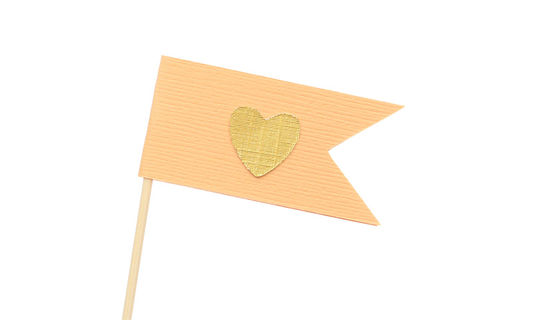 Made from sturdy, textured cardstock and gold glitter cardstock and threaded with beige twine.