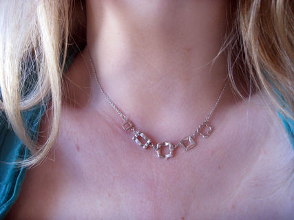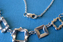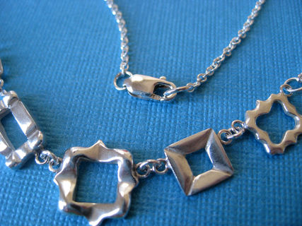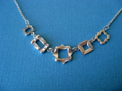 This is one special necklace. I put it on after I made the first one and didn't take it off for at least a month. It just went with everything! Handmade in sterling silver, this necklace features 5 different and detailed teeny tiny frames linked together, a sturdy 1.5 mm cable chain and a high quality lobster clasp. All the connections are soldered closed so you don't have to worry about your favorite necklace coming apart.