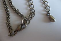 The pendant is 2 3/4" long and 1 5/8" wide. The total length of the chain is 16 1/2" plus a 3 1/2" extension.
