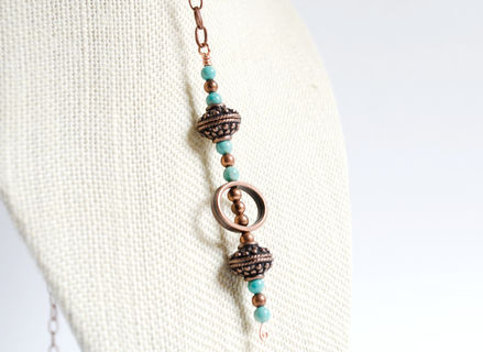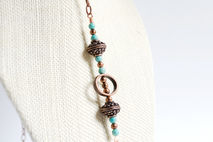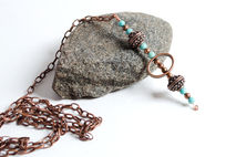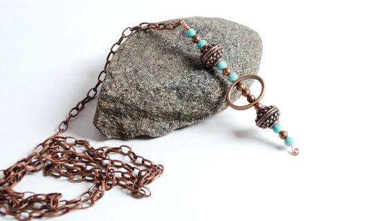 This pretty, lightweight, bohemian antiqued copper necklace is great no matter what you're wearing. The turquoise beads add a splash of colour to its rustic appearance and complete the look.