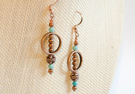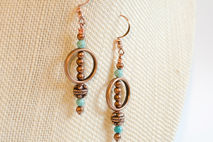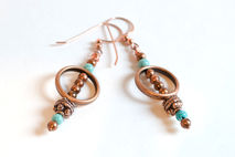 These pretty, lightweight, bohemian antiqued copper earrings are great no matter what you're wearing. The turquoise beads add a splash of colour to their rustic appearance and complete the look.