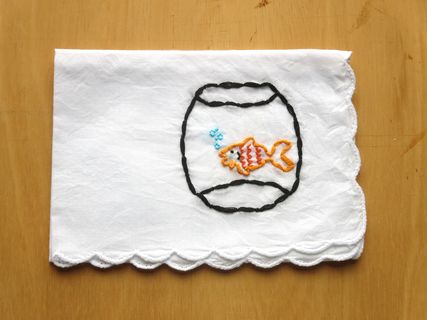 It's like a little pet for your pocket. Hand embroidered goldfish in a fishbowl. Original design by wrenbirdarts, custom made to order.