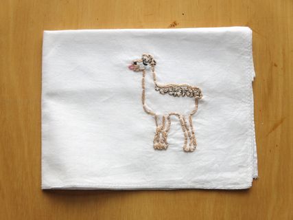 Original hand embroidered llama, by wrenbirdarts. Custom made to order