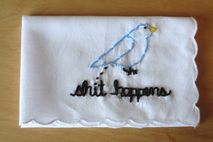 My promise to you is a completely original and created with care handkerchief. Each and every design in my shop is original and hand lettered or hand sketched. Once you place your order, I outline the design directly onto the hanky, then I hand embroider (no machines!) using 100% cotton thread. That’s just the beginning. Once the embroidery is complete, I hand wash the hanky with unscented soap, dry, label, and press each hanky. After that, I double check, and wrap your order in simple, recyclable, cute packaging!