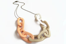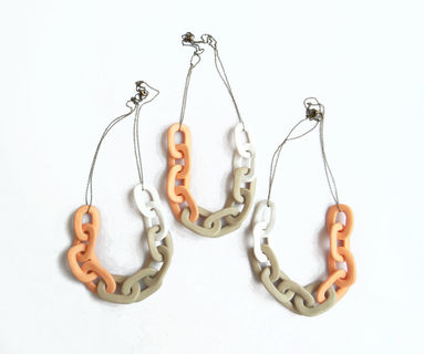 Colorful chunky chain necklace in gentle color combination of white, peach and nude beige. Modern and versatile necklace, great for adding a bit of soft color to any outfit.