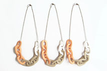 The necklace is made of polymer clay, each link hand sculpted and connected to the next, then connected to delicate gold plated chains.