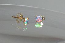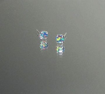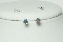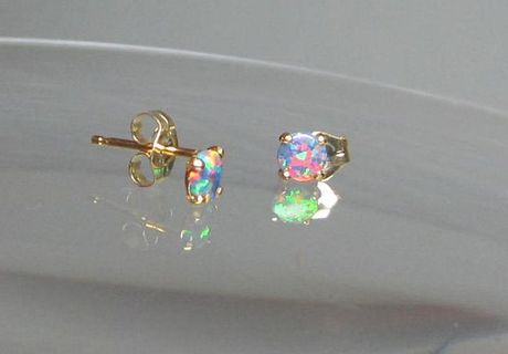 Tiny Opal Studs Multicolored 4mm Opal Earrings Set in Sterling Silver or 14Kt Gold Filled Dainty and Elegant perfect for everyday Beautifully understated. Look Different From Every Angle Stud Post Earrings have a Round Stone 4mm Cabochon Set in 925 Sterling Silver or 14Kt Gold-Filled 4mm Round, earnuts included, Glimmering Colors October Birthstone