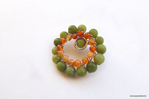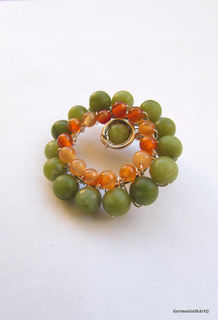 Created from 6 mm jadeite, 4 mm carneol and jewelry wire (NF metal ring).