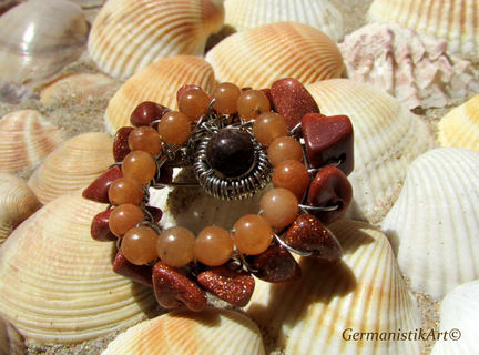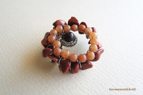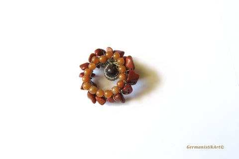 Created from Red Aventurine, Sunstone and jewelry wire (NF metal ring).